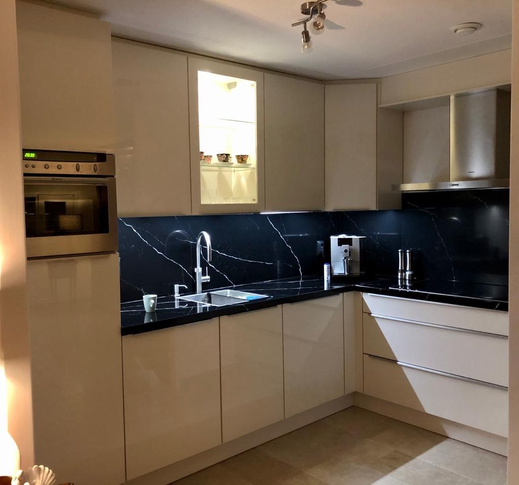Bij de verkoop was al verteld, dat de achterwanden apart werden ingemeten, omdat ze zeker wilde weten waar de stopcontacten waren als de keuken was gemonteerd. Netjes werd er met ons contact opgenomen toen de achterwanden binnen waren, om deze te monteren bij ons.