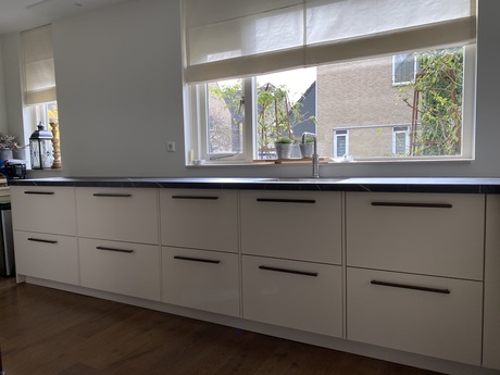 Bedankt voor de review, bij I-KOOK Capelle aan den IJssel streven we ernaar om een prettige winkelervaring te bieden, en het doet ons goed om te horen dat je genoeg voorbeeldkeukens hebt kunnen bekijken. Fijn om te horen dat het advies goed was. De witte moderne keuken in combinatie met het keukenblad is prachtig geworden. Mocht je in de toekomst nog verdere vragen hebben, staan we graag voor je klaar. Heel veel kookplezier in de nieuwe keuken!
