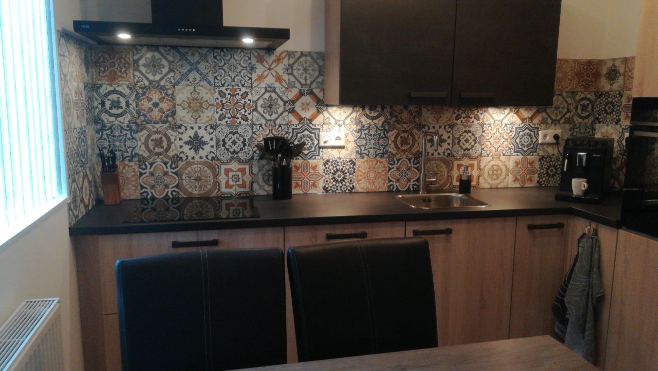 We hebben gekozen voor een hoekkeuken, met een oven op ooghoogte (heel prettig). De gekozen keuken/ indeling geeft veel meer ruimte.