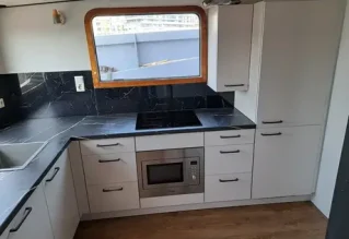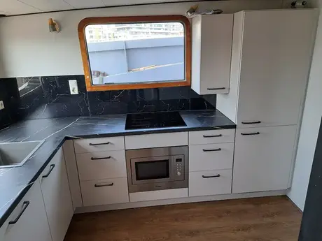 Wat is het mooi geworden! Het was een bijzondere taak om deze keuken in de boot te monteren, maar zeker niet onmogelijk! Wij zijn blij met het eindresultaat en vooral blij dat jullie tevreden zijn.