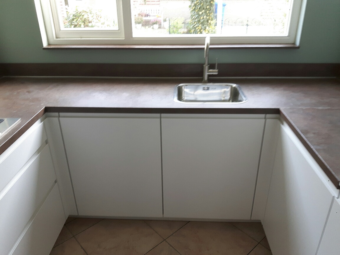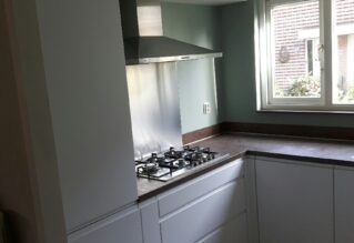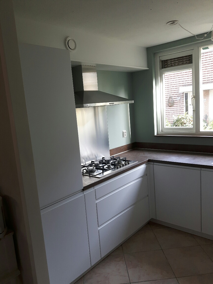 De combinatie met de groene muurkleur is perfect! Hopelijk mag u nog lang genieten van deze mooie keuken, ik wens u er heel veel plezier mee. We gaan de levering van uw keuken natuurlijk nooit meer vergeten. Het is uniek dat we onze monteur in uw huis mochten verrassen met zijn 25 jarig jubileum ☺