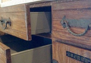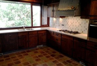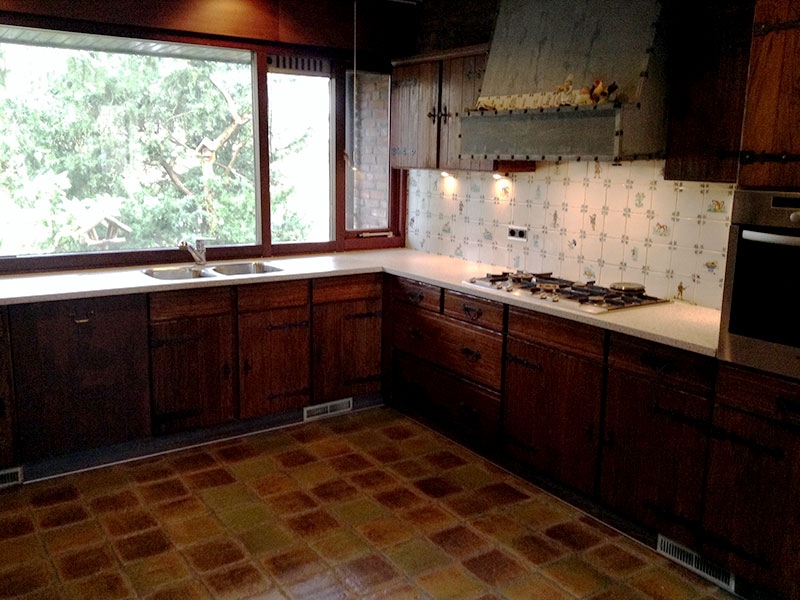Nieuw of renoveren. Omdat het een mooie houten keuken is, kozen wij voor renovatie. Nieuwe scharnieren en lade’s, werkblad, afzuigunit en verlichting. In de hoekkast een draaiplateau set de Le Mans.