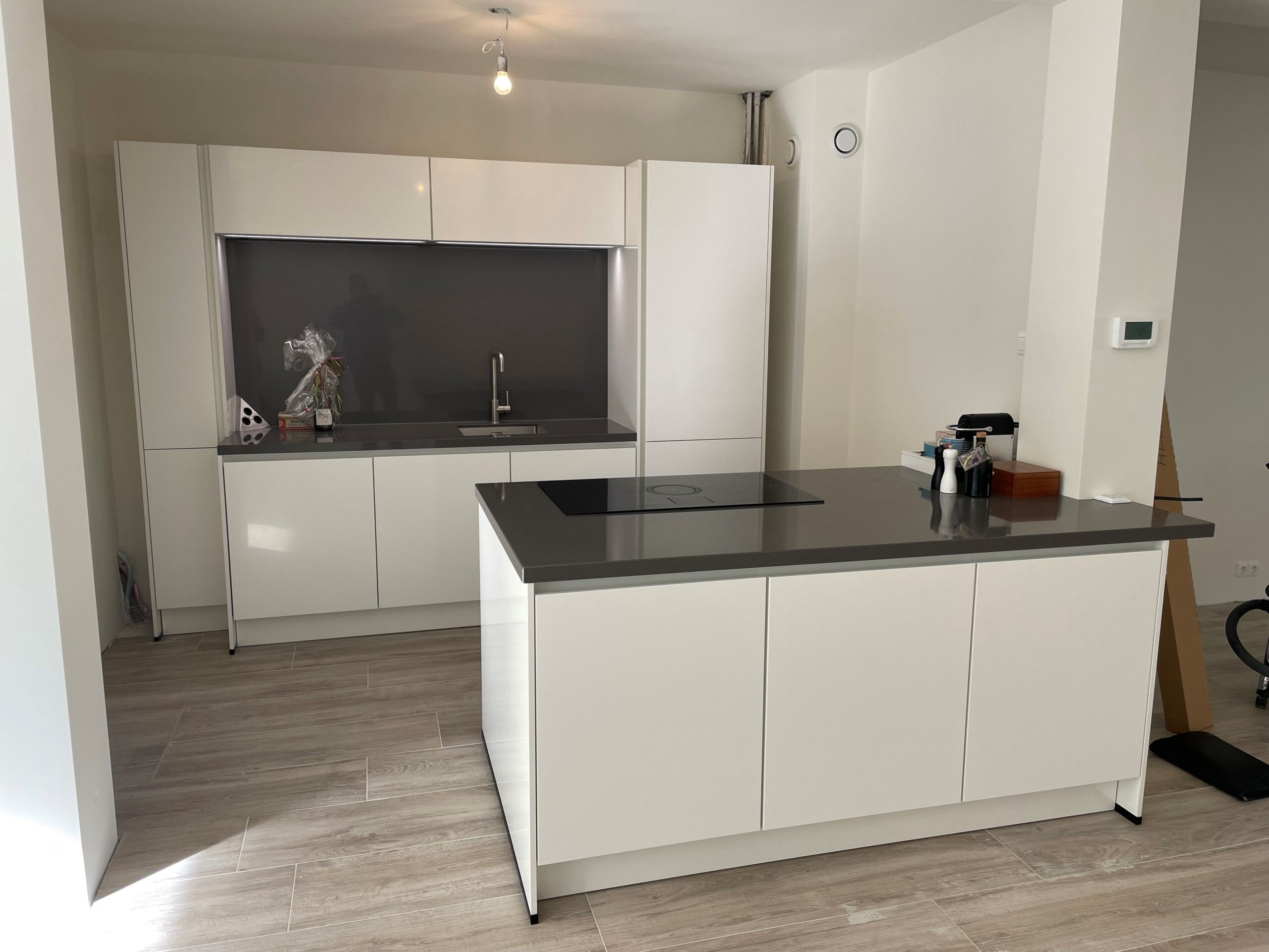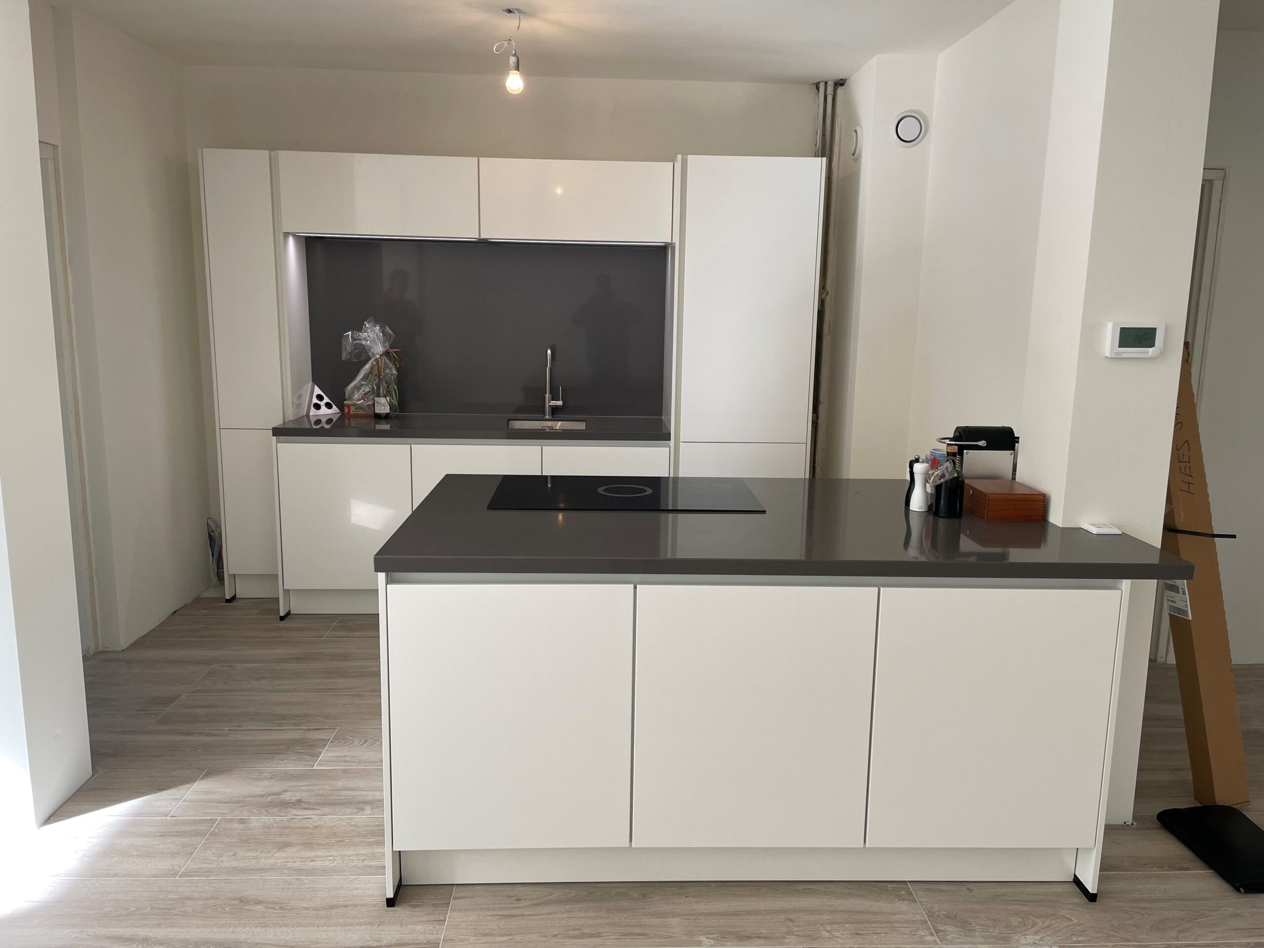 De dag van de bezorging liep ook zoals gepland, ondanks dat draai in de woning erg lastig was. De keuken is daarna vakkundig gemonteerd, deze twee monteurs dachten goed mee en waren erg vrolijk.