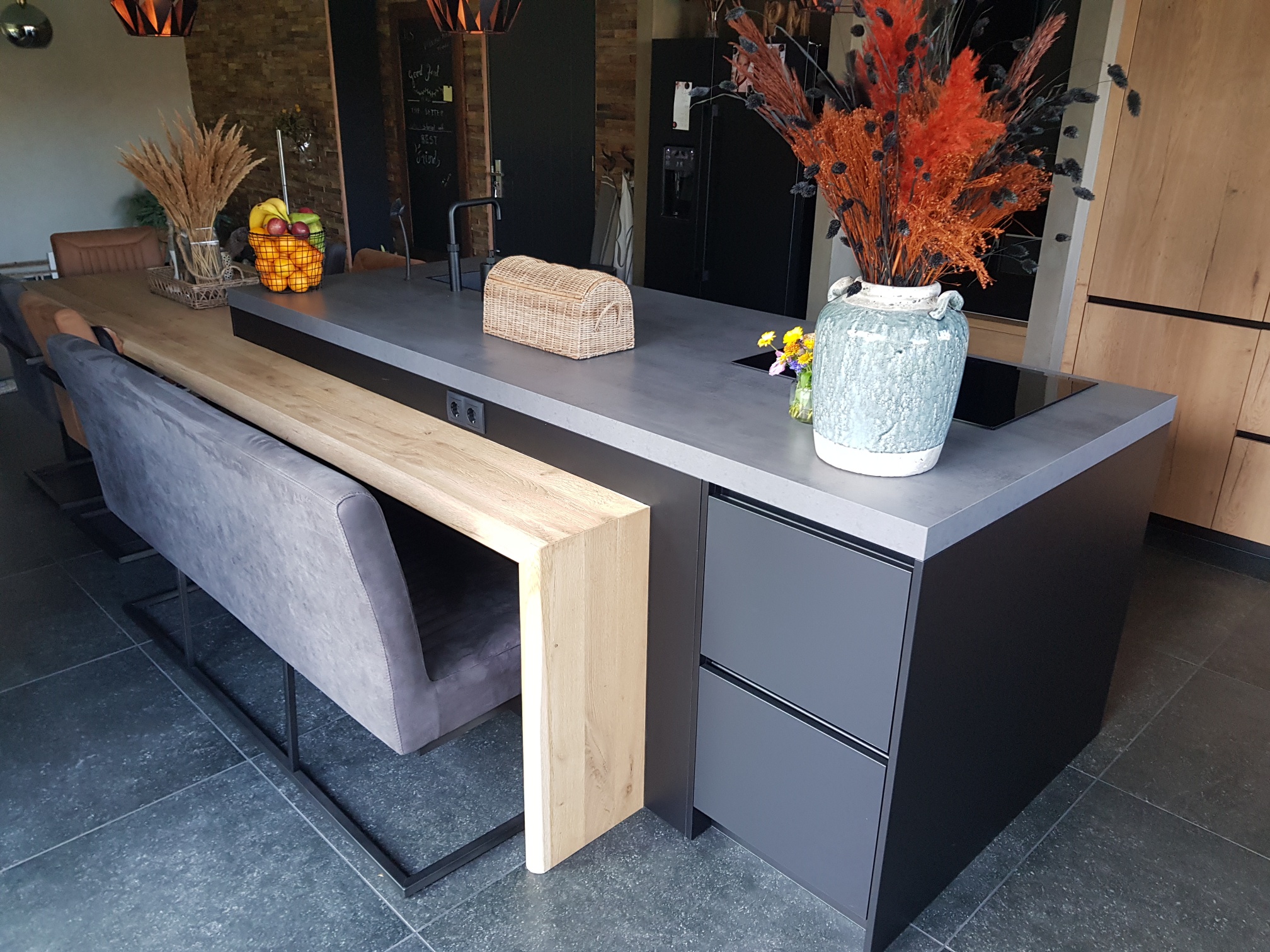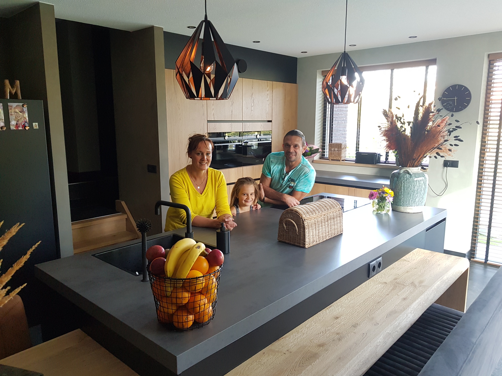 Het ontwerp dat hij heeft gemaakt zag er al prachtig uit, we hadden het al helemaal voor ogen. Een kookeiland met kookplaat en afzuiging in 1 zijn de grootste veranderingen/nieuwe ervaringen en dat werkt zeer prettig! Het traject vanaf daar verliep vlot en goed. Kleine foutjes werden snel en professioneel opgelost en alles is zoals afgesproken verlopen, complimenten daarvoor!