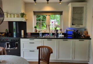 De monteur is twee volle dagen bezig geweest en het resultaat is schitterend! Ik heb een paar foto’s bijgevoegd. We zijn er ontzettend blij mee. Op een van de frontjes zit een kras, maar daar wordt een nieuwe voor geleverd. Verder dacht de monteur enorm met ons mee wat betreft een verhoging waar de oven/kookplaat op staat, zodat je de lelijke betonnen vloer niet ziet en hij adviseerde ook om het niet tot het plafond te dichten, vanwege de sierlijst bovenaan. Alles in overleg met ons, superfijn. De koof wordt z.s.m. afgewerkt door de aannemer (schilderwerk e.d.). Echt een prachtige keuken!! Nogmaals dank voor alle goede zorgen, we zullen jullie winkel zeker aanraden!