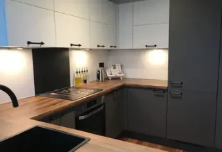 Het is fantastisch om te horen dat jullie zo tevreden zijn met het resultaat! Door de prachtige combinatie van een houten keukenblad met de donkere kast kleuren hebben jullie een klassieke, maar ook zeker een moderne keuken uitgekozen. Het ziet er prachtig uit! Als jullie in de toekomst nog meer hulp nodig hebben, staan we graag weer voor jullie klaar.