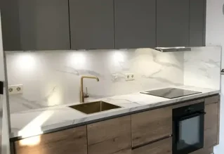 Thank you for your kind words! We're glad I could assist you in designing your new kitchen. The marble kitchen top looks amazing in combination with the wooden kitchen! It's great to hear that the planning went well and that our delivery team and installation expert, Sergie, exceeded your expectations. We appreciate your feedback and your business.