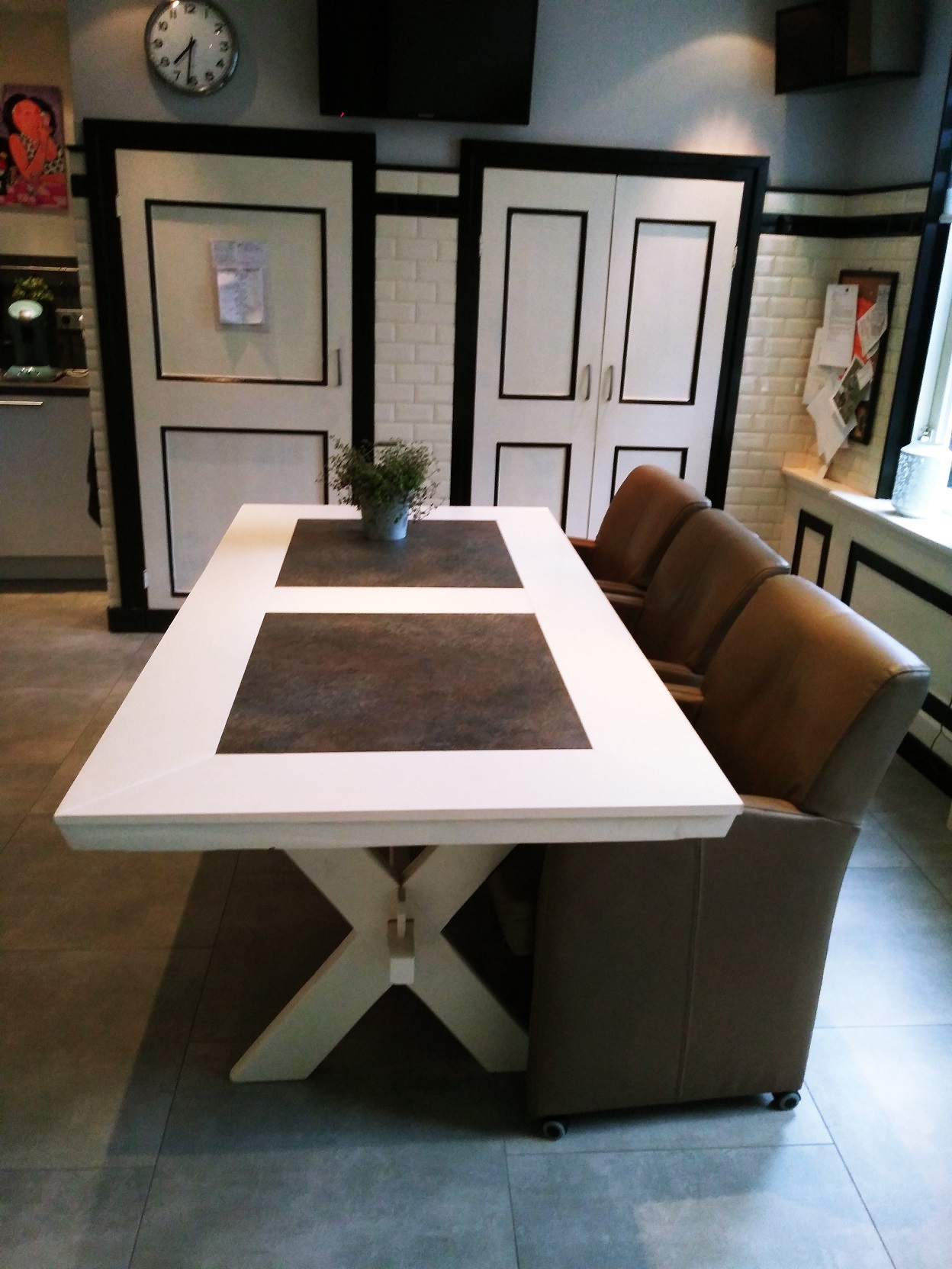 Ook de tafel die vermaakt is met de Keuken bladen.