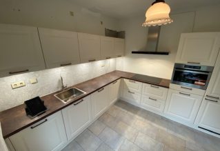 Goede adviezen voor inrichting, opstelling en keuze uit diverse materialen, mogelijkheden en combinaties resulteerden in een mooie hoekkeuken.