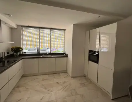 De keuken past perfect in de mooie ruimte! De witte kasten geven een elegante uitstraling en er is voldoende werkruimte om met z'n alle heerlijk te koken. Namens het hele team heel veel plezier gewenst met deze prachtige keuken!