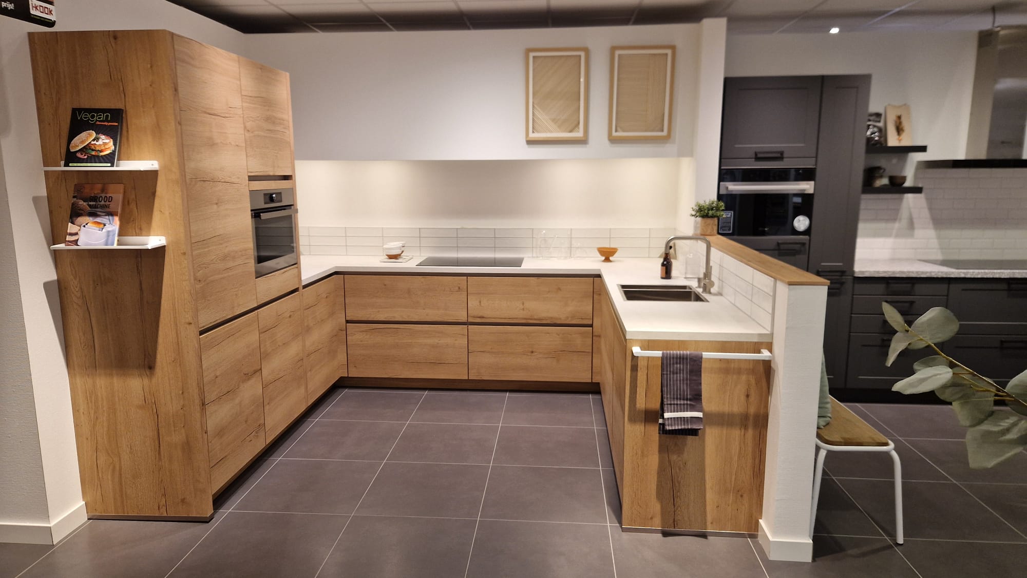 Luxueuze Nobilia keuken van alle gemakken voorzien en veel bergruimte, ideaal voor wie comfort en stijl wil combineren. Inclusief Whirlpool apparaat en Pelgrim afzuigkap.